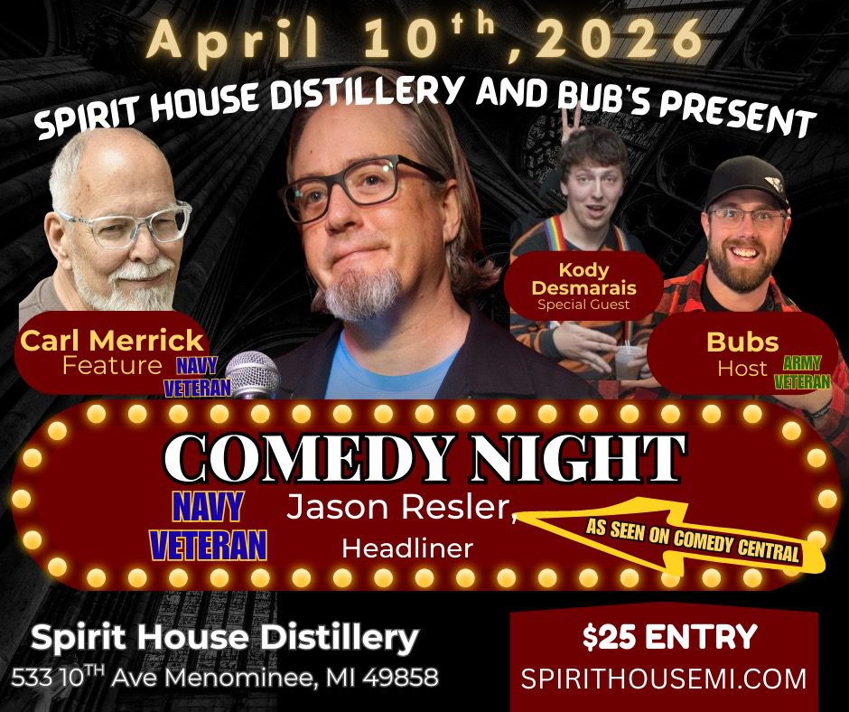 Comedy is back in Menominee at Spirit House Distillery — and this lineup delivers.